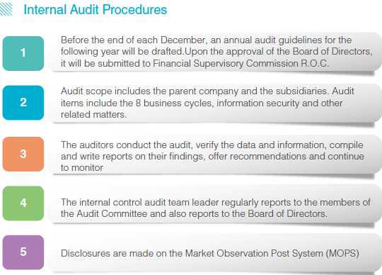 We have established effective accounting and internal control systems to fulfill ethical management and assigned internal auditors to audit regularly. The audit reports are then reported to the Board of Directors.