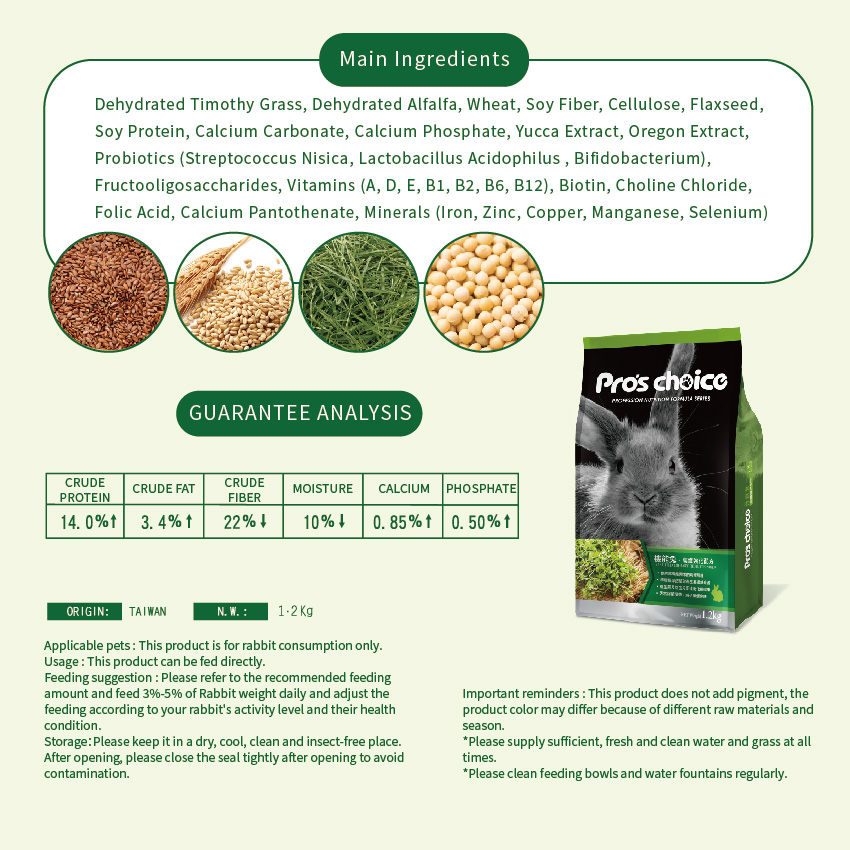 Pro's Choice Rabbit Feed- Fortified Dietary Fiber Formula