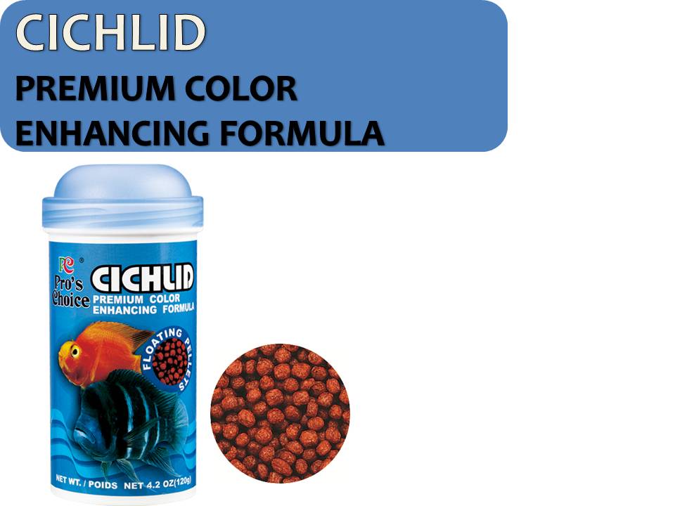 Pro’s Choice® Cichlid Floating Pellets are nutritionally formulated diet for colorful Cichlid; enriched with natural β-Carotein and Astaxanthin essential for brighter color as well as lustrous growth. Fortified multi-Vitamins and Minerals improve digestion and lesser excrements.