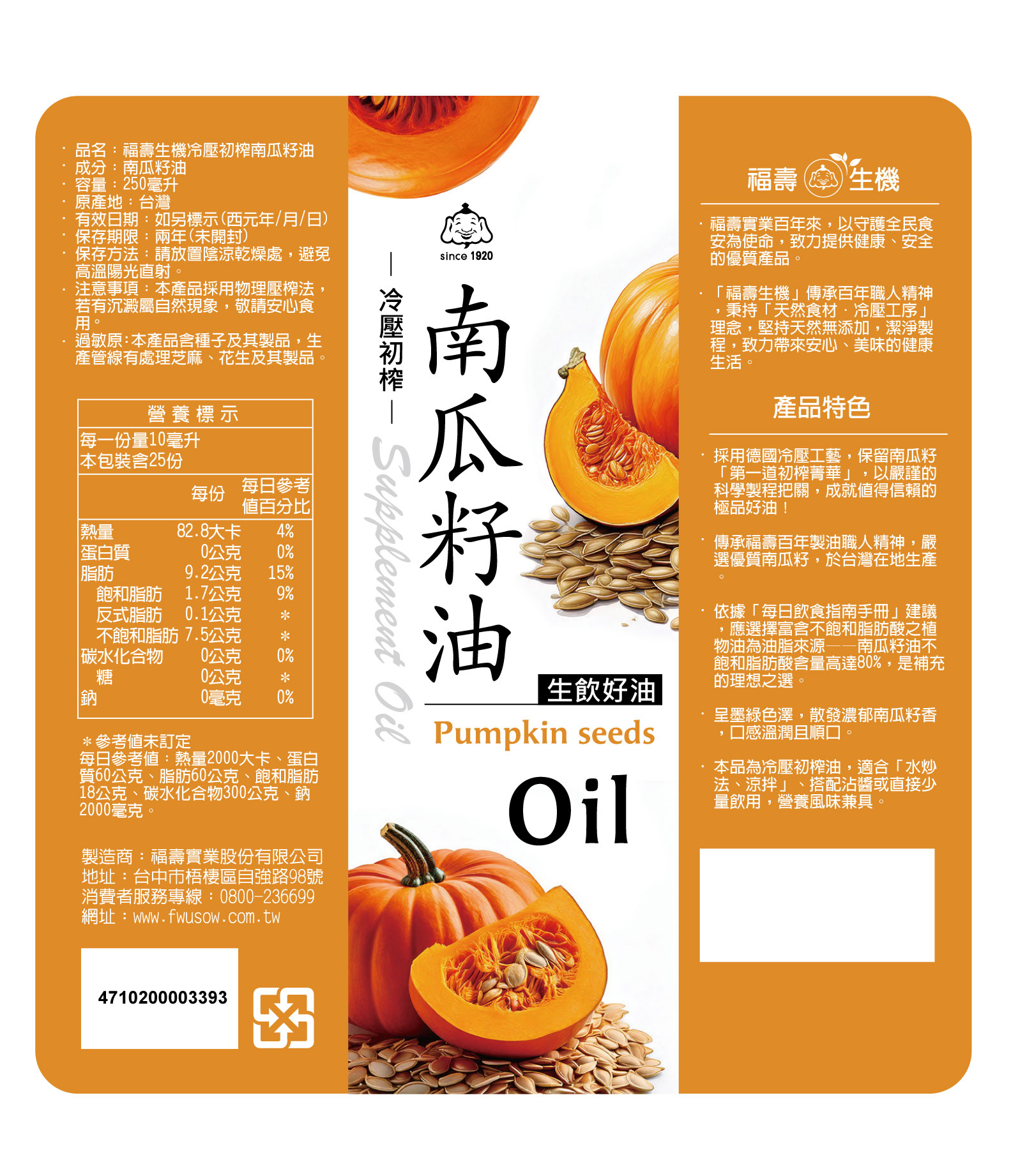 嚴選優質南瓜籽,以德國冷壓技術保留第一道初榨菁華,傳承福壽百年製油精神,從原料到工法,層層把關,只為給您最純粹的好油。