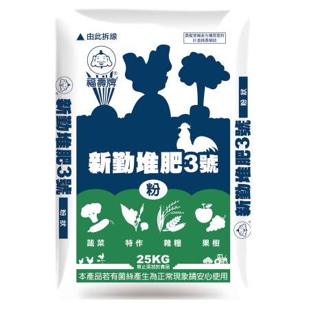 - 調配禽畜糞及菇類培植廢棄包,製程並添加微生物促進發酵,經常施用可以改良土壤理化性質,適於一般果樹、蔬菜、雜糧及特用作物等。