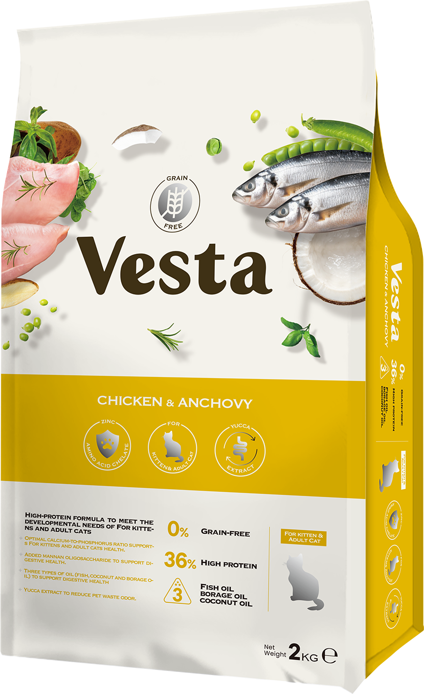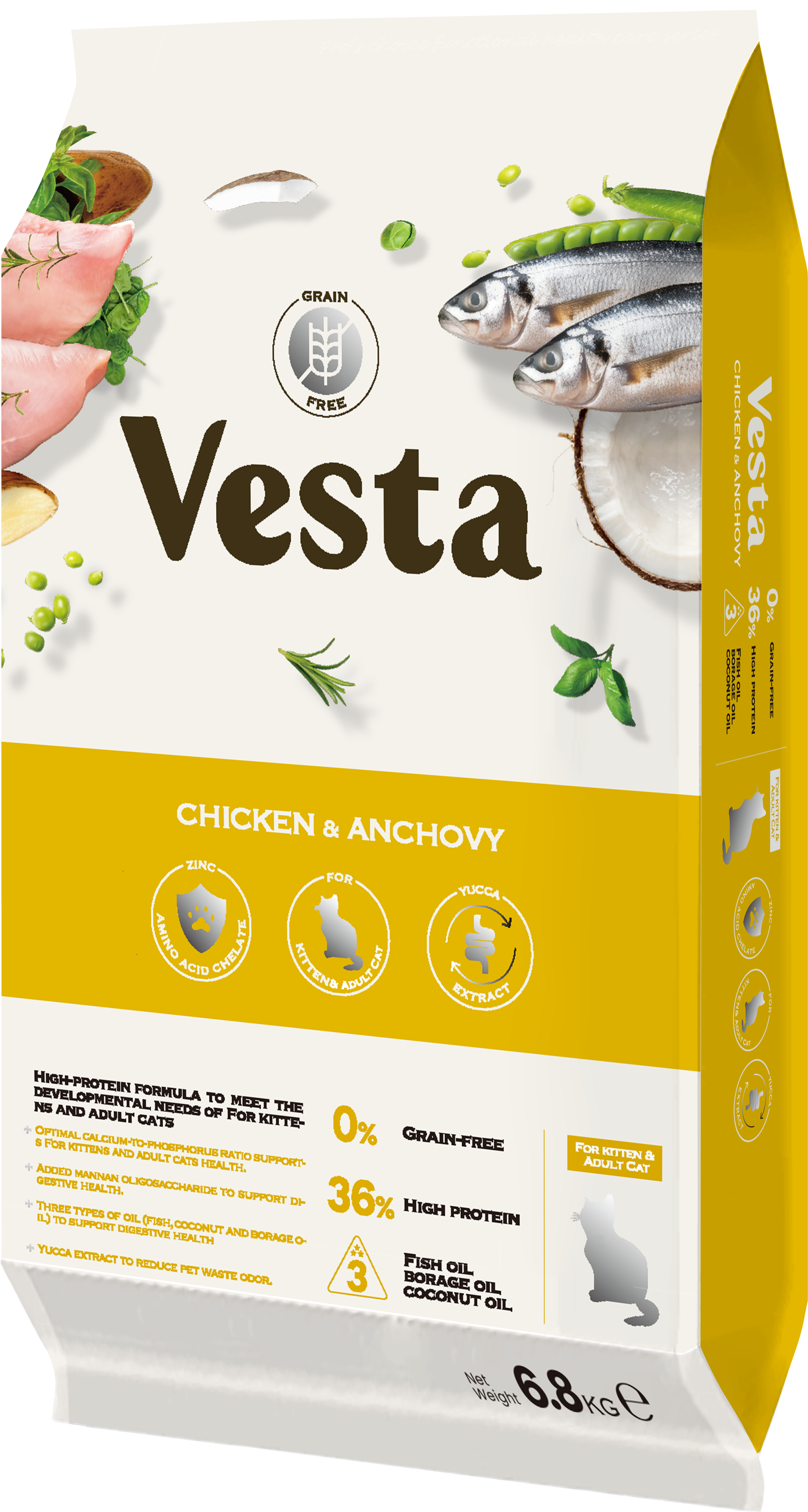 1.無穀低敏配方:嚴選優質食材,降低過敏風險2.添加甘露寡糖:呵護腸道健康,維持消化順暢3.高蛋白質與脂肪:滿足幼貓與成貓成長及活力所需4.複方黃金三角油:滋養皮膚毛髮,毛色柔亮健康5.絲蘭精華:有效減少排泄異味,生活更清新舒適