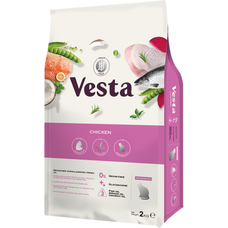 1.無穀低敏配方:嚴選優質食材,降低過敏風險2.小分子鮭魚水解蛋白:易消化吸收,營養輕鬆利用3.添加葡萄糖胺:支持骨骼與關節健康,維持活力行動力4.複方黃金三角油:滋養皮膚與毛髮,毛色依舊亮麗柔順5.絲蘭精華:減少排泄異味,生活更清新舒適